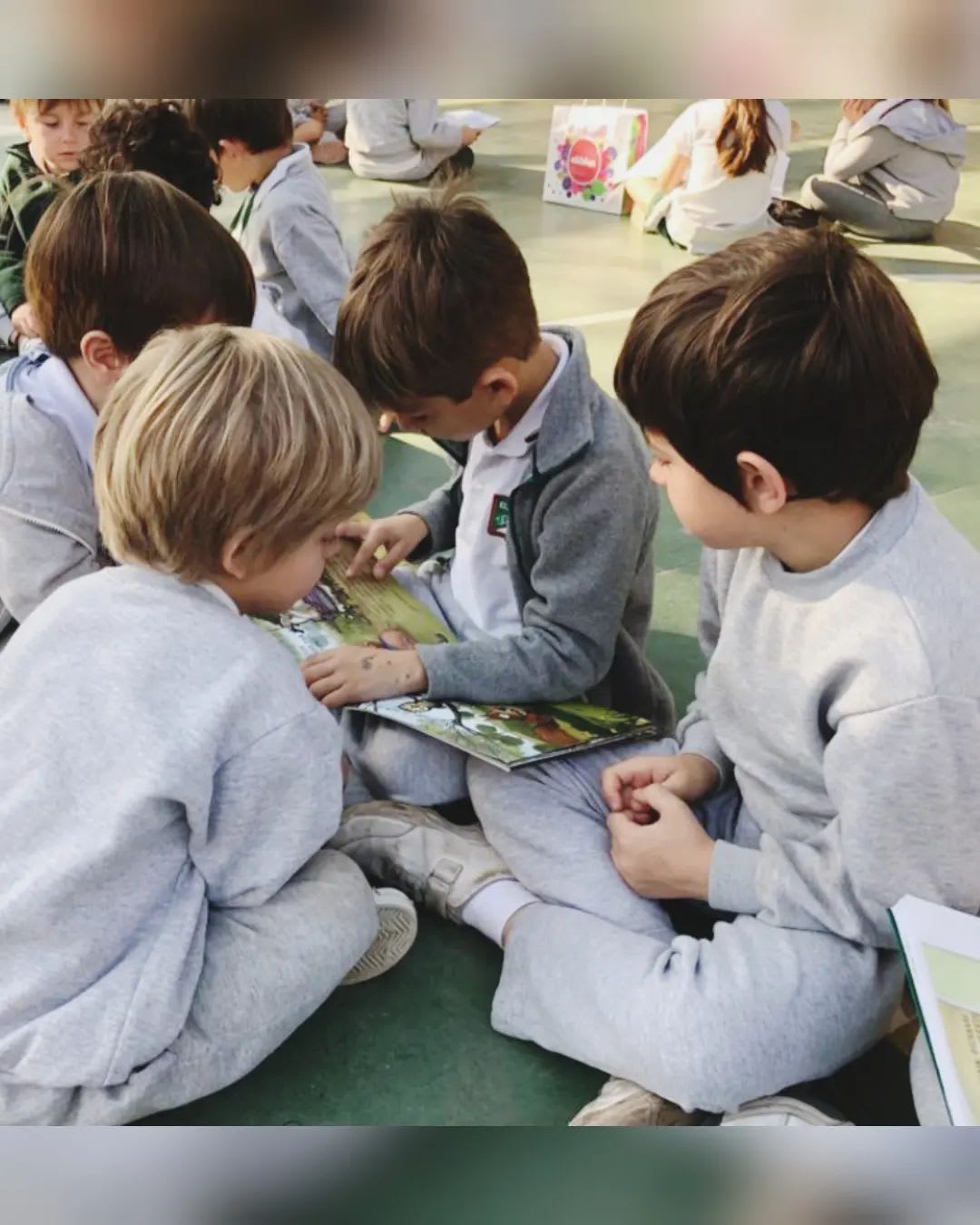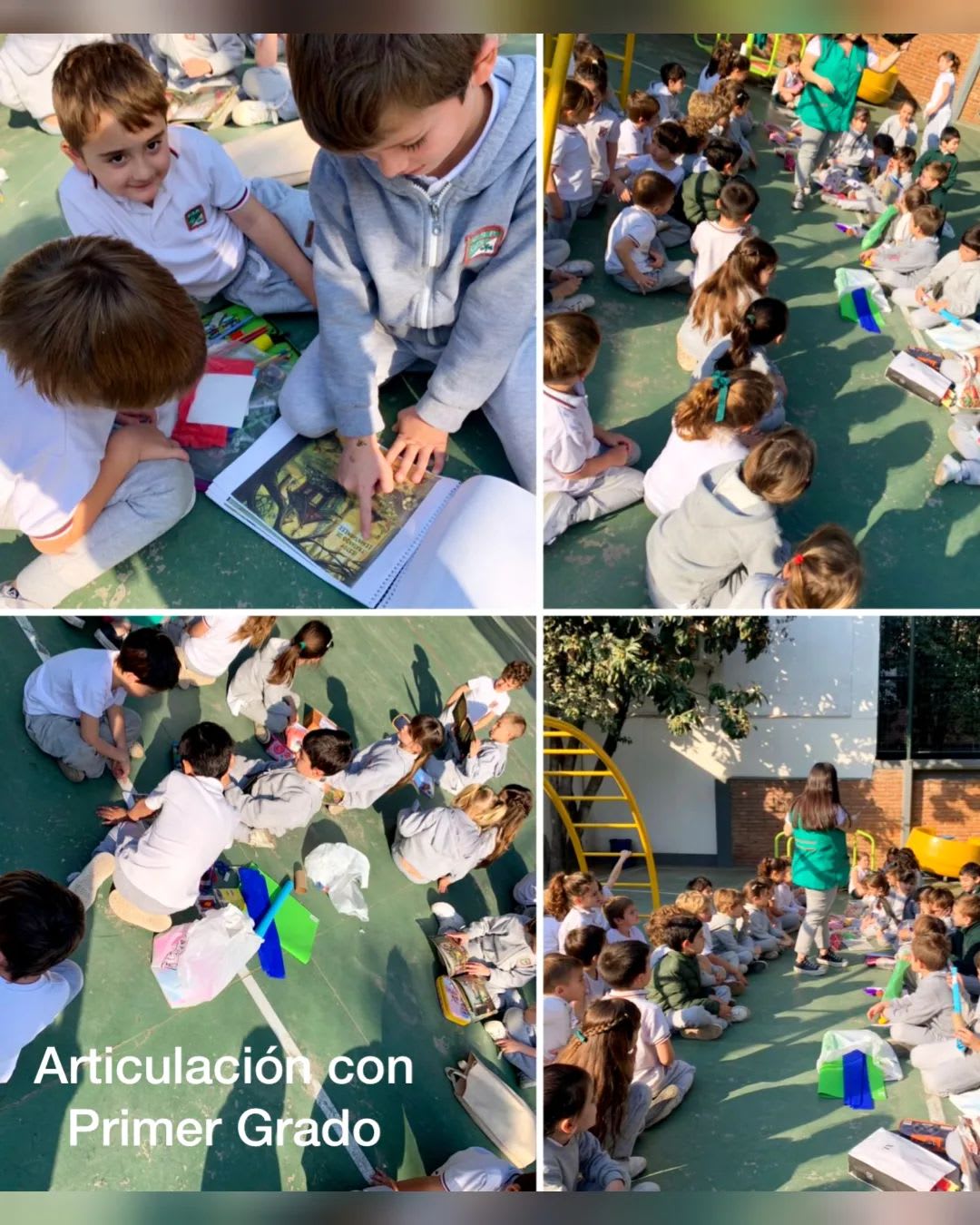 Muy contentos, los alumnos de 1er grado leyeron un cuento a sus compañeros menores y luego realizaron un collage. Una hermosa mañana de encuentro para alumnos y docentes. ¡Gracias a nuestro equipo psicopedagógico por acompañar!