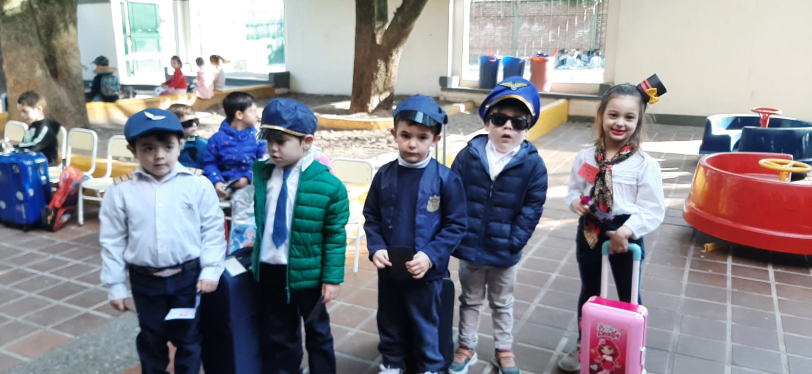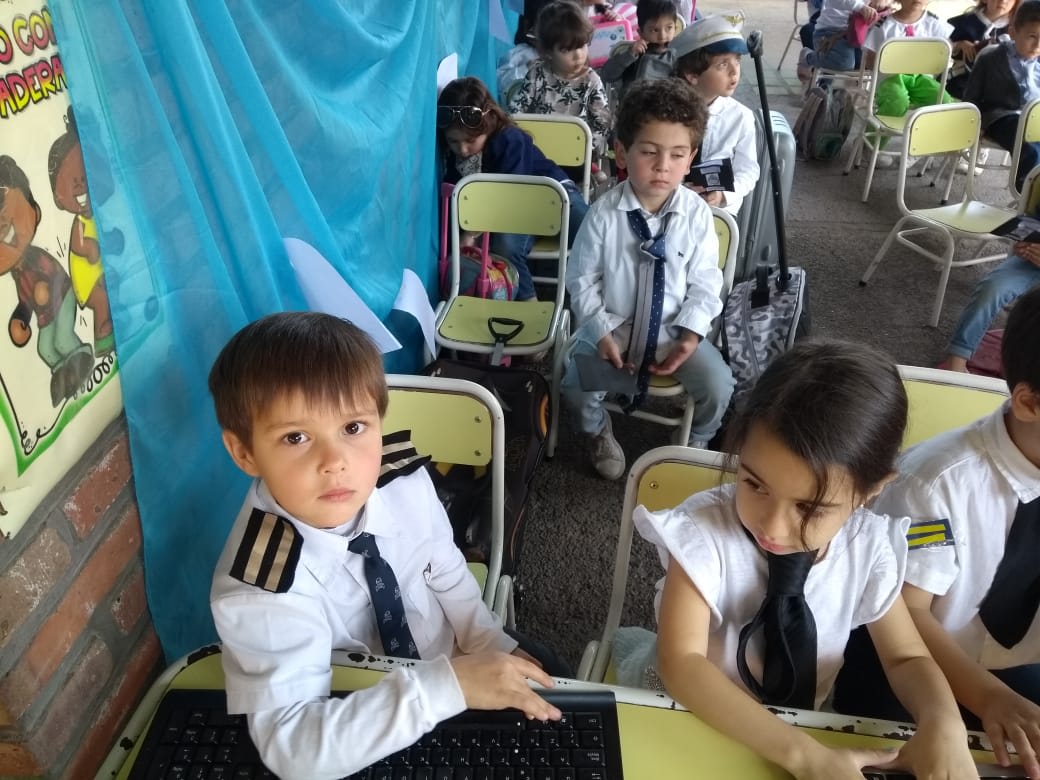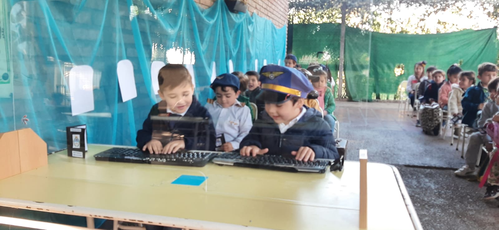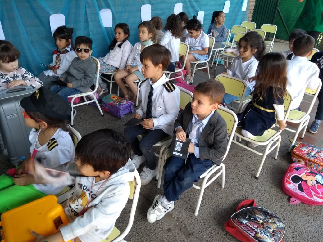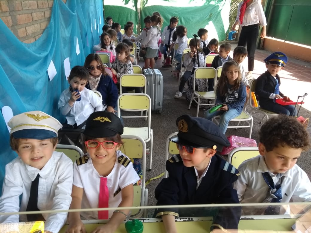 Junto a sus docentes los niños de las salas de 4 años dramatizaron un viaje en avión. Pilotos ,azafatas y pasajeros disfrutaron de un hermoso vuelo, despachando antes su equipaje y presentando la documentación correspondiente.