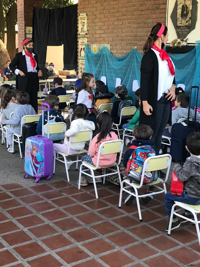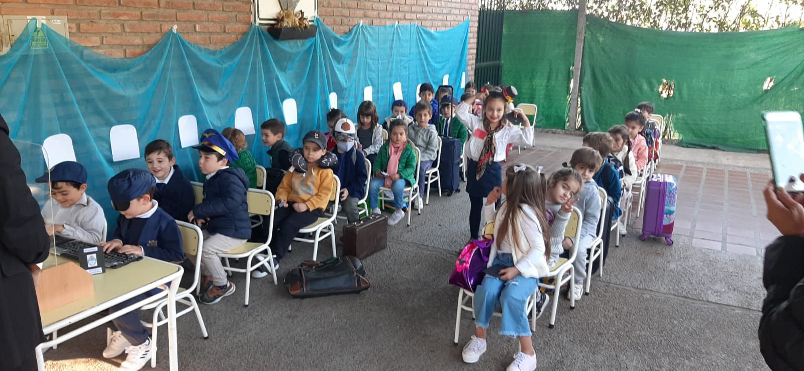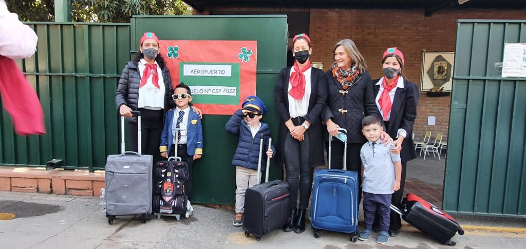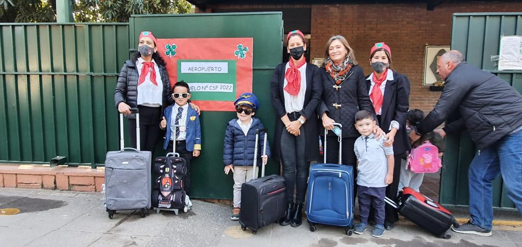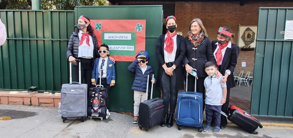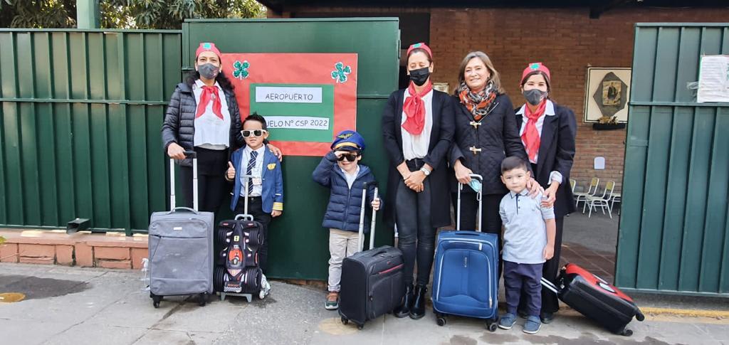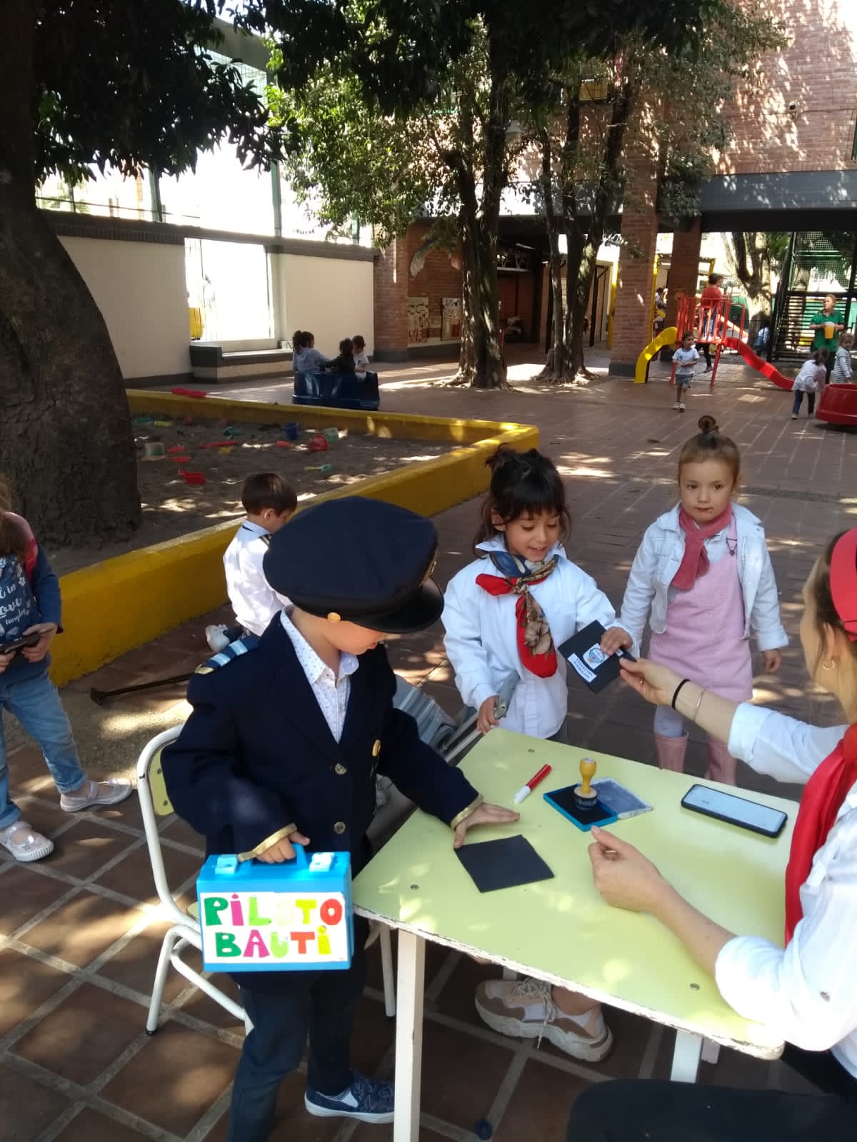 Junto a sus docentes los niños de las salas de 4 años dramatizaron un viaje en avión. Pilotos ,azafatas y pasajeros disfrutaron de un hermoso vuelo, despachando antes su equipaje y presentando la documentación correspondiente.