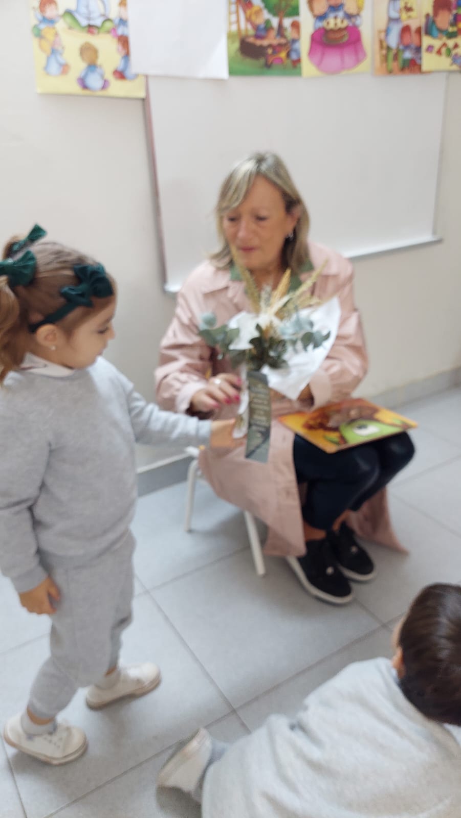 Resulta difícil expresarles en palabras lo especial que fue esta jornada, la sola presencia de las abuelas generó un ambiente de dulzura indescriptible y no podríamos asegurarles quiénes estaban más emocionados: si las abuelas, las docentes o los niños que de pronto recibieron esta hermosa visita y entonces cada salita se convirtió en el mundo del cuento que relataban juntos. Un sorteo por cada sala fue la forma de elegir a las abuelas que llegaron en ambos turnos provistas de cuentos y hasta juguetes para interpretar cada historia. Los niños, que esta semana comenzaron a trabajar el propósito de “saber escuchar”, prestaron atención a estas mujeres que con paciencia y cariño relataron con su voz pero también con sus propios cuerpos cada texto. Al final de cada encuentro y como agradecimiento, se llevaron como obsequio un hermoso ramo de flores entregado por sus nietos y nietas.