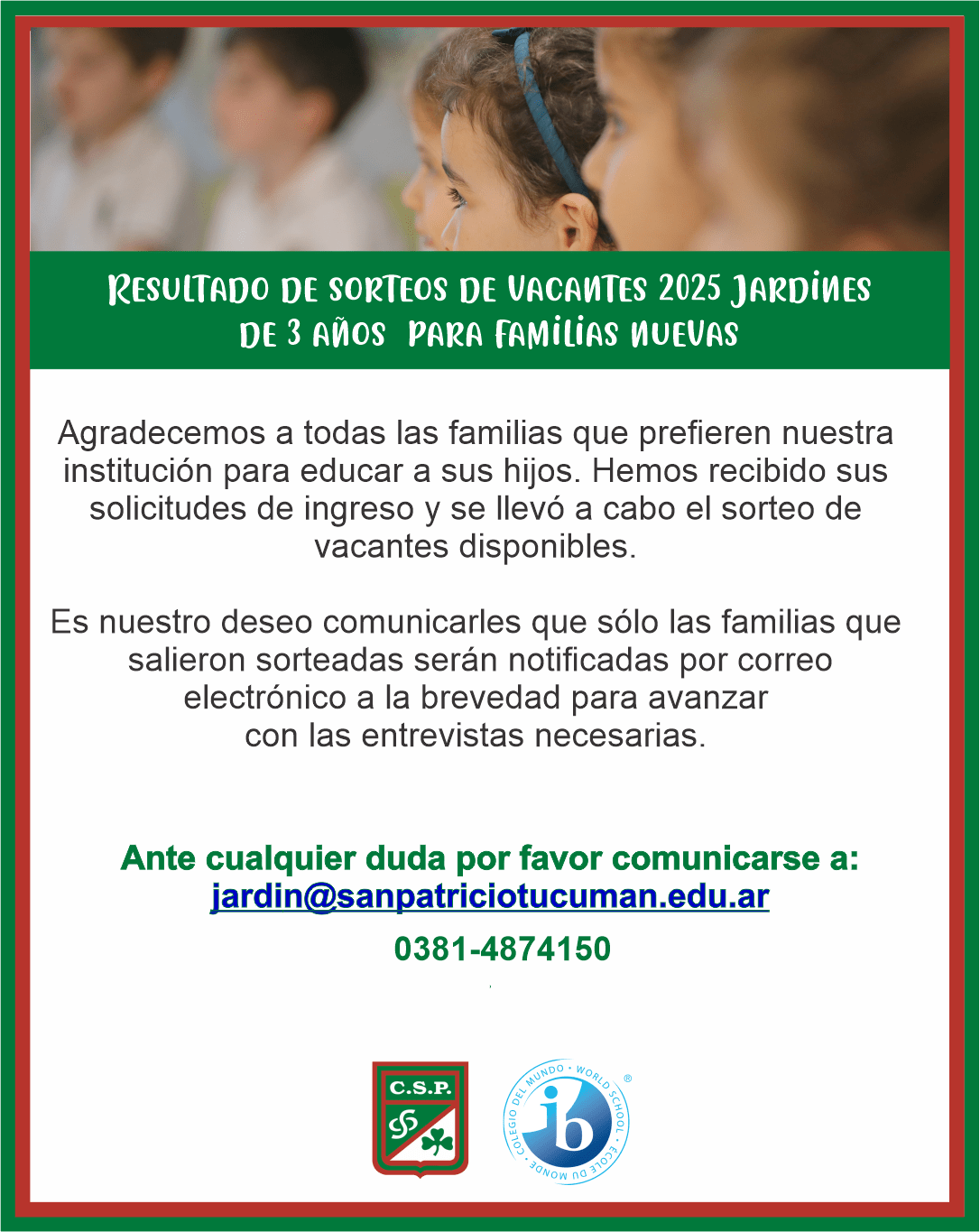 Es nuestro deseo comunicarles que sólo las familias que salieron sorteadas serán notificadas por correo electrónico a la brevedad para avanzar con las entrevistas necesarias.